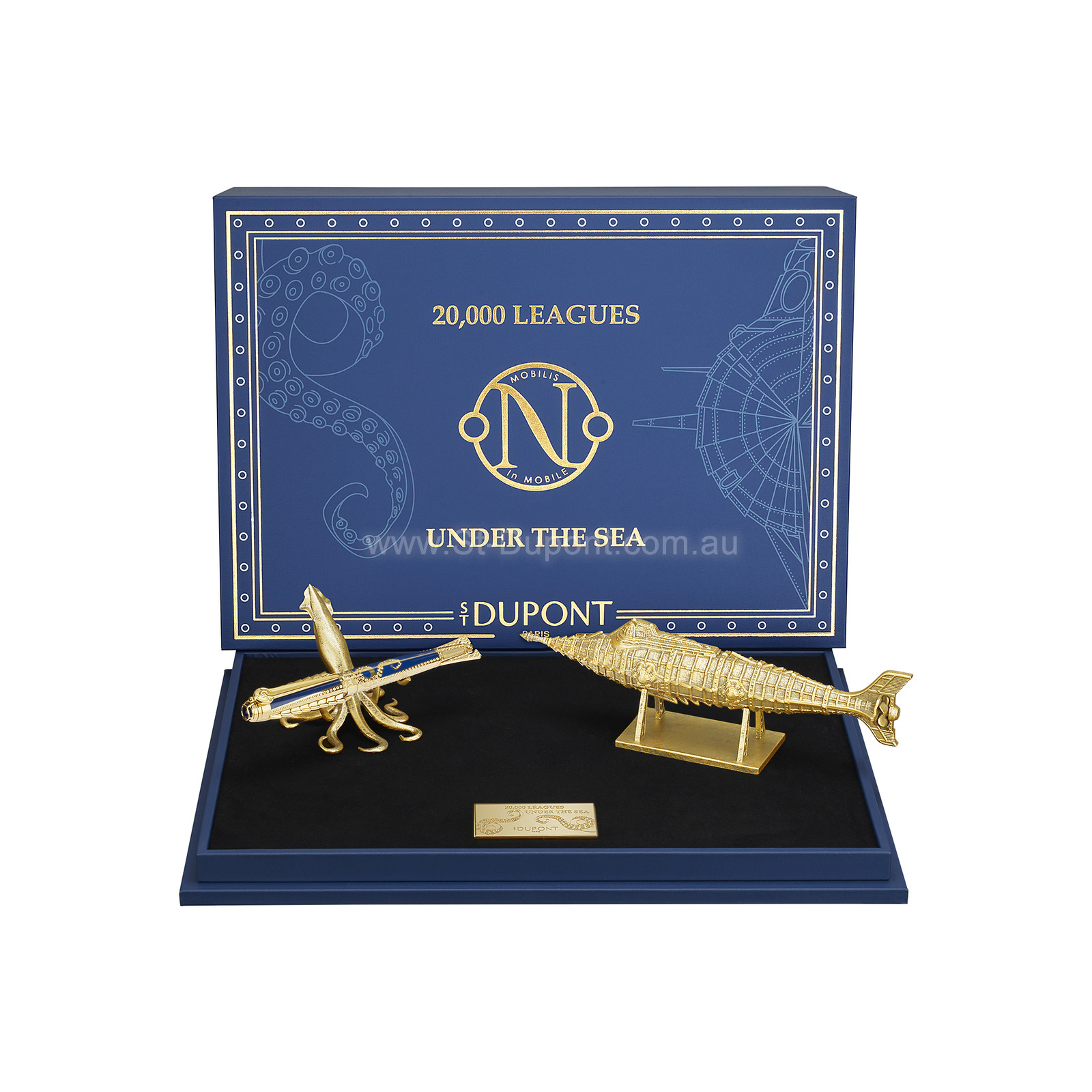 Tribute to the captivating universe of 20,000 leagues under the seas, this limited edition expresses all the know-how of S.T. Dupont. Published in 1870, the novel recounts the journey of three castaways captured by Captain Nemo, this mysterious inventor who travels the seabed aboard the Nautilus, submarine very ahead of the technologies of the time. Portholes, turbines, corals, fins and other tentacles of giant squid inspire this limited edition and its three ranges, all related to different chapters of the book. A story in three stages in which to dive with passion.