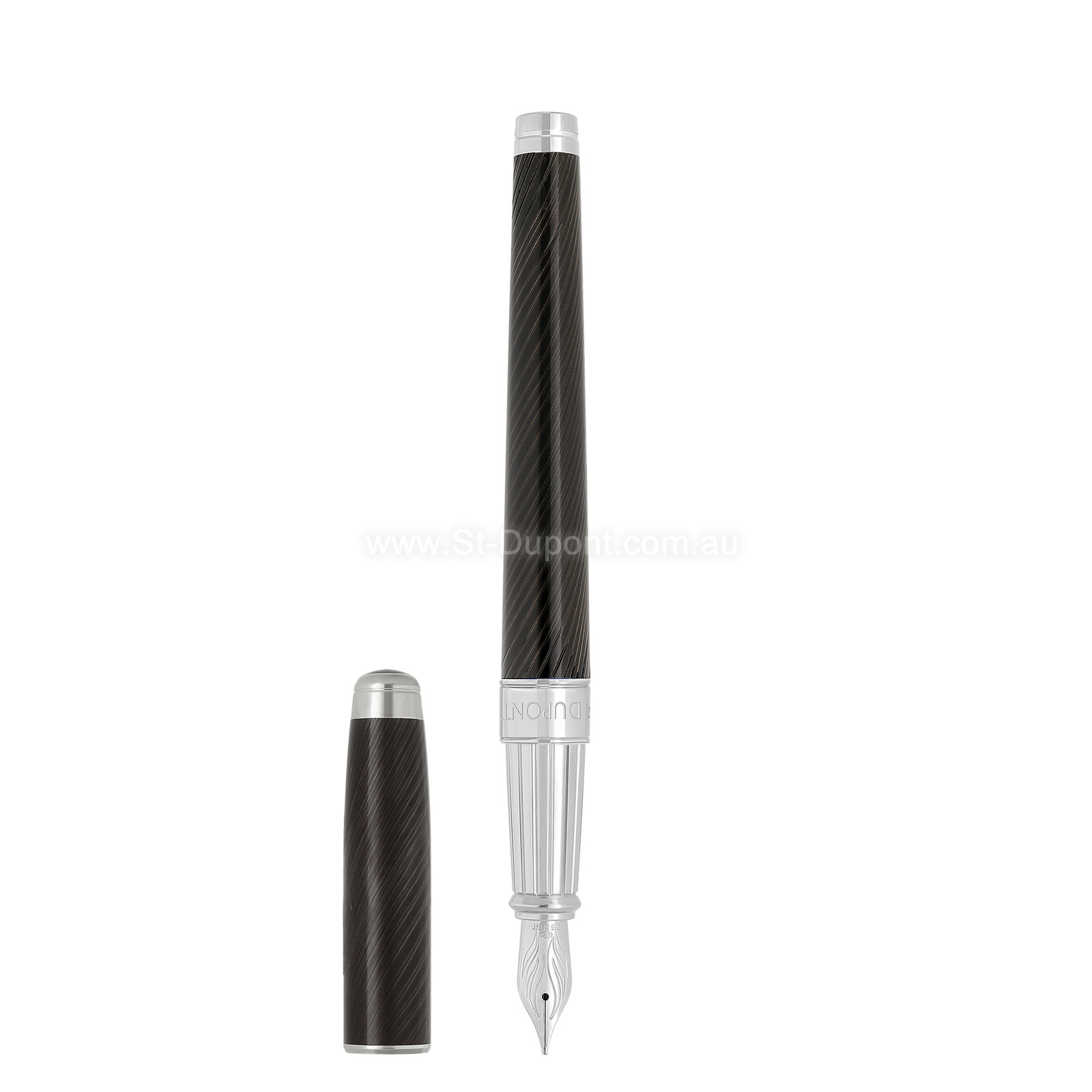 Line D Eternity Large fountain pen in black lacquer with “horse mane” guilloché. Palladium-plated finishes.